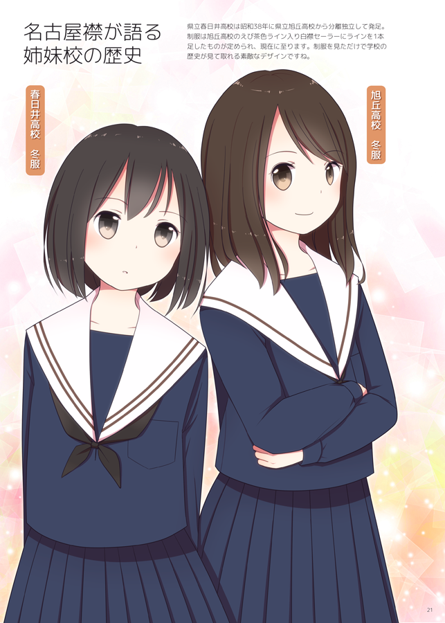 2016/09/24 Category : 制服 10/2 制服宣言お品書き (クリックで大きい画像が表示されます) 10月2日に名古屋国際会議場にて開催される制服系オンリーイベント「制服宣言」に参加します。 今回は珍しくしっかりお品書き作りました。(pixivのお品書き用フリー素材偉大…) 新作はA4クリアファイルです。オリジナルの名古屋襟セーラーの女の子を描きました。 中に紙を挟みこむと絵柄の色が変わる仕掛けを仕込んでます。まだ現物を見ていないので成功しているか不安ですが…是非現物をお手に取って遊んでみてくださいー。 既刊は残部僅の2種は本当に残り少ないのでおそらくこのイベントで最後の売り切りになると思います。通販も終了しており再販予定もないので、まだお持ちでない方は是非この機会に。 当日の混雑具合によりますが、スケブは先着2名くらいまでならお受けできると思うのでお気軽にお声掛けくださいー。 それでは、当日はよろしくお願いします!