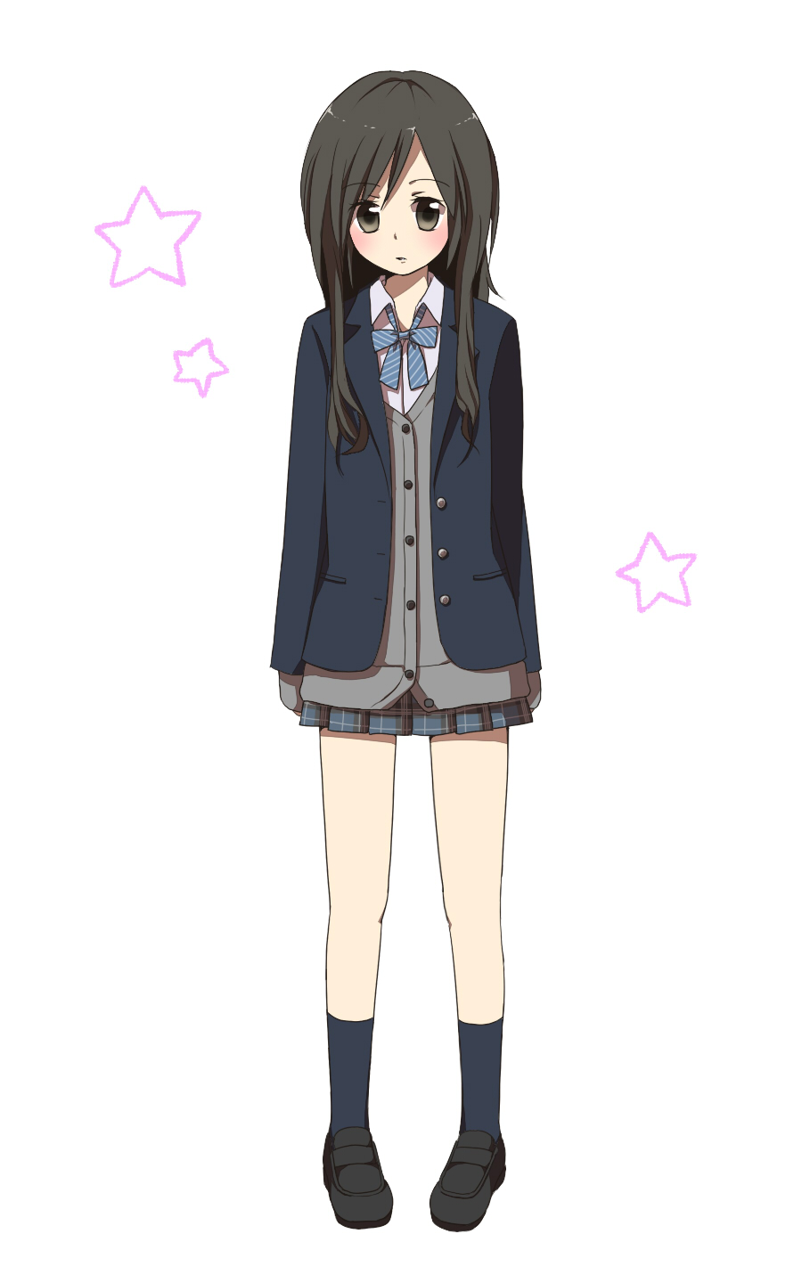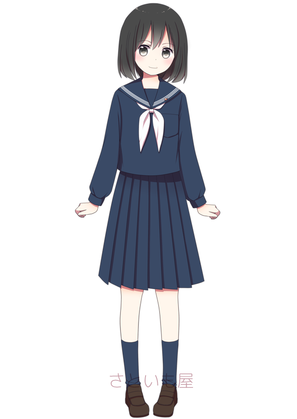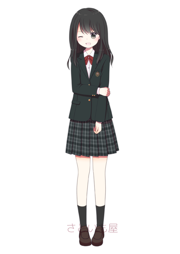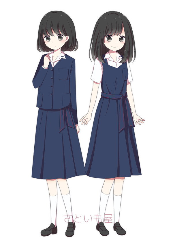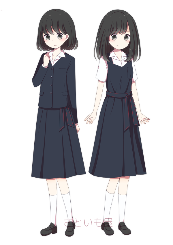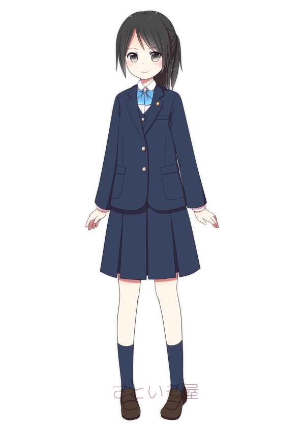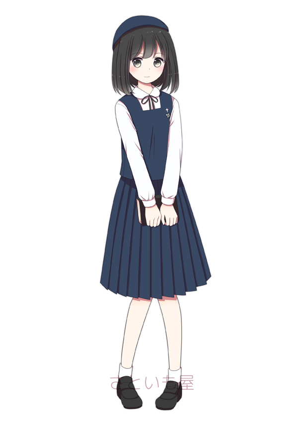 | 私立光ヶ丘女子高校 | 上下紺色で素朴ながらも上品な制服。集会等ではベレー帽を着用する |