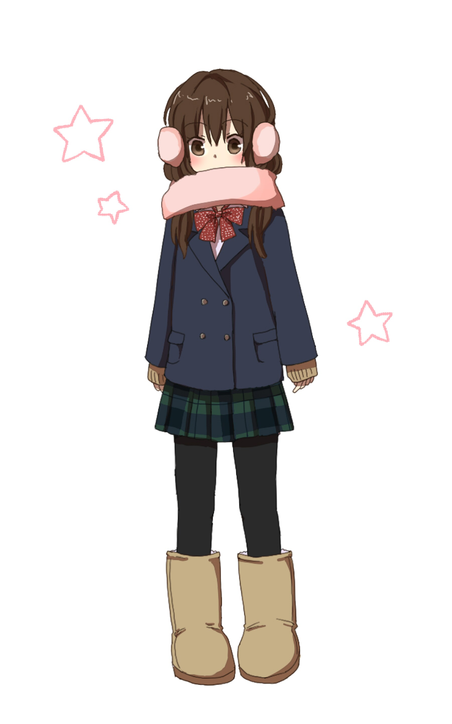 | 私立札幌第一高校 | 細かいドット模様のリボンが可愛らしい。制服にムートンブーツは北海道では一般的 |