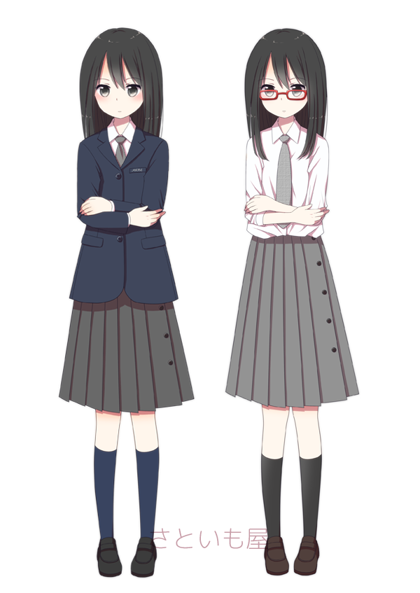 普通科はセーラーブレザーで、スカートの裾にライン入り。看護科は一般的なブレザーで、スカートに隠れストライプ入り。 |