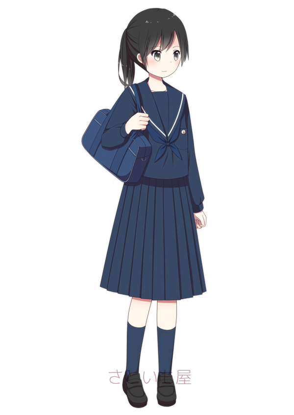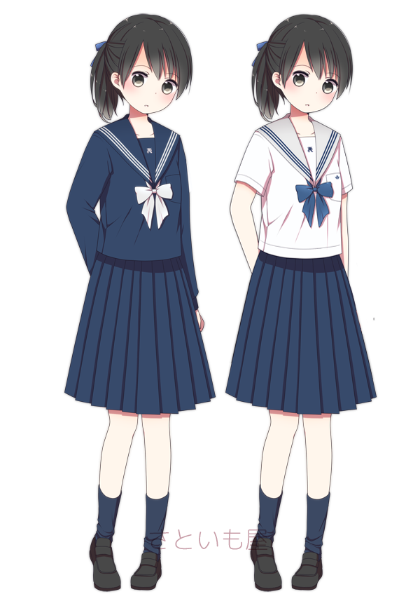 | 県立佐織工業高校 | 一般的な3本線セーラー。鮮やかな青色の大きなリボンが可愛らしい |