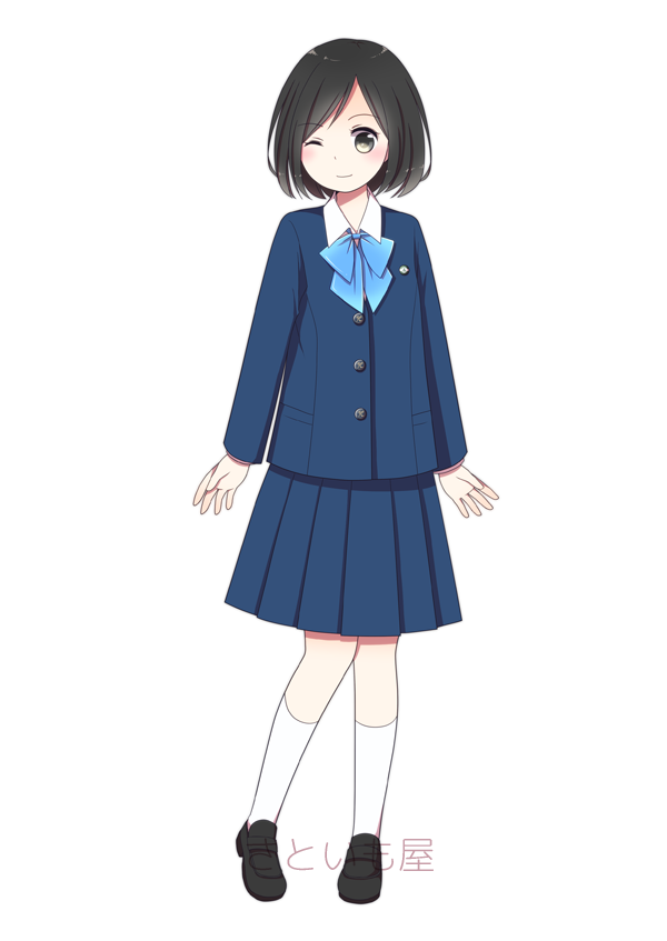 | 市立北高校 | 伝統を感じさせる紐リボン・上下紺色のブレザースタイル。 |