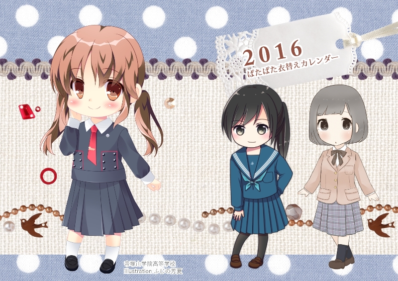 2015/12/27 Category : 制服 今後のイベント参加予定について ご無沙汰しております。さといも屋です。 今更ですが、コミティア114にてお立ち寄りいただいた皆様、ありがとうございました!制服ジャンルでは初めての東京イベント進出でしたが、皆様に暖かく接していただき楽しく参加することができました。 今後のイベント参加について簡単に。 12/31(木) コミックマーケット89 3日目 @東京ビッグサイト 私自身は参加しませんが、実在制服系サークルPERFECT SEA様のスペースで頒布されるグッズにイラストを寄稿させていただきました。 品名は「2016 ぱたぱた衣替えカレンダー」。 四季ごとの制服の着こなしイラストを、東京・大阪・名古屋に実在する高校の制服をモデルに3名で合作したものとなります。3人×四季=12枚のイラストをカレンダーと組み合わせて楽しめます。 カレンダーとイラスト部分が別々になっています。 C89 3日目 東テ-13b PERFECT SEA にて頒布。よろしくお願いいたします。 1/17(日) コミックライブ名古屋 @ポートメッセなごや 配置はC12です。 新刊として岐阜の制服本を持っていく予定です。詳細は改めて告知します。 あとはコミティアで頒布した全国女子校制服四季と、上記で紹介したぱたぱた衣替えカレンダーを持っていきます。 1/31(日) こみっく★トレジャー27 @インテックス大阪 こみトレ初参加。 配置は4号館 ウ-19bです。頒布物は上記のコミライと同じになりそうです。 とりあえず岐阜本の原稿を終わらせないと…。 PR