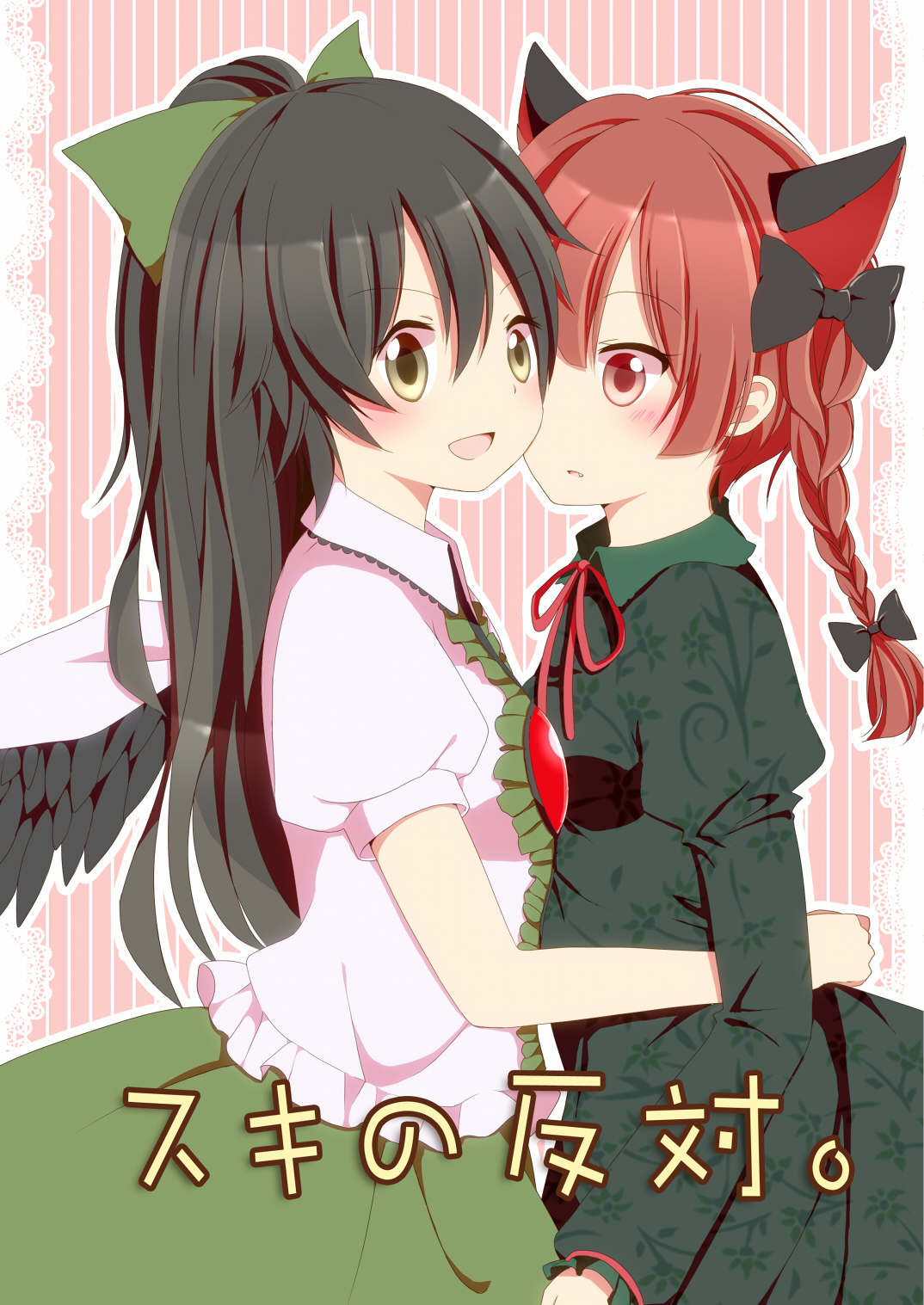 2013/10/01 Category : 東方 紅楼夢新刊告知~ こんにちは。 昨日、新刊の原稿無事脱稿しました。完成が楽しみです。 さて、新刊はどのような本かというと… 「スキの反対。」B5/26P 表紙フルカラー/本文モノクロ 思春期おりんくうのキス話です。 おくうは無邪気にお燐にキスを迫るが、お燐の気持ちは…。 思春期特有の葛藤を描きました。 私のおりんくう萌えを詰め込んだので、おりんくう好きの方には是非読んでいただきたいですー。 とらのあな様にて委託させていただいてますので、紅楼夢来れない方はこちらで。 本文サンプルもあります。↓ http://www.toranoana.jp/mailorder/article/04/0030/15/44/040030154442.html 販売開始はイベント当日(10/13)からですが、予約はすでに受付開始してます。委託部数少なめなのでお早目にどうぞ! 紅楼夢には既刊と既グッズ(?)も持っていきますよー。 詳しいお品書きはまた直前にでも。